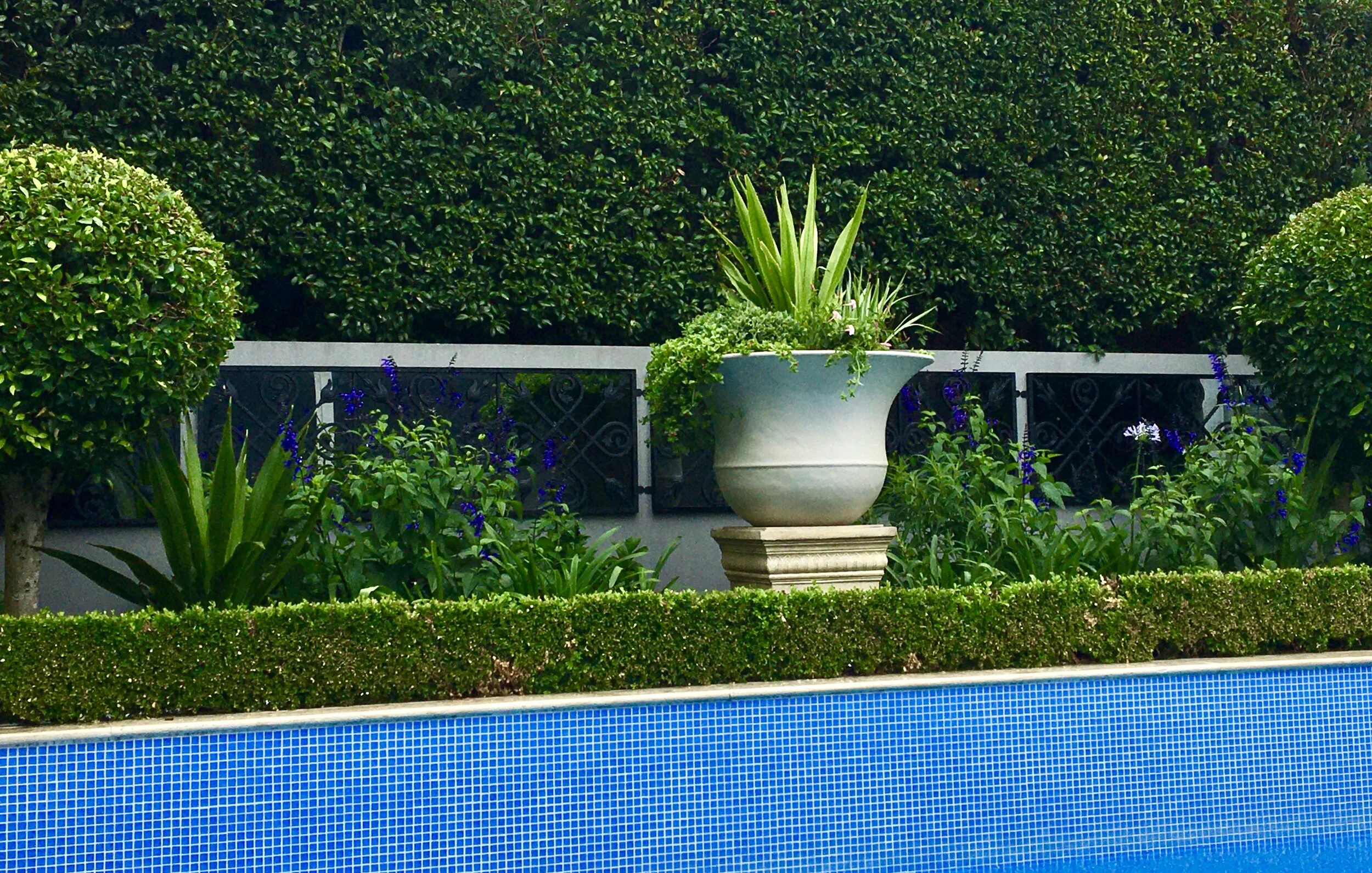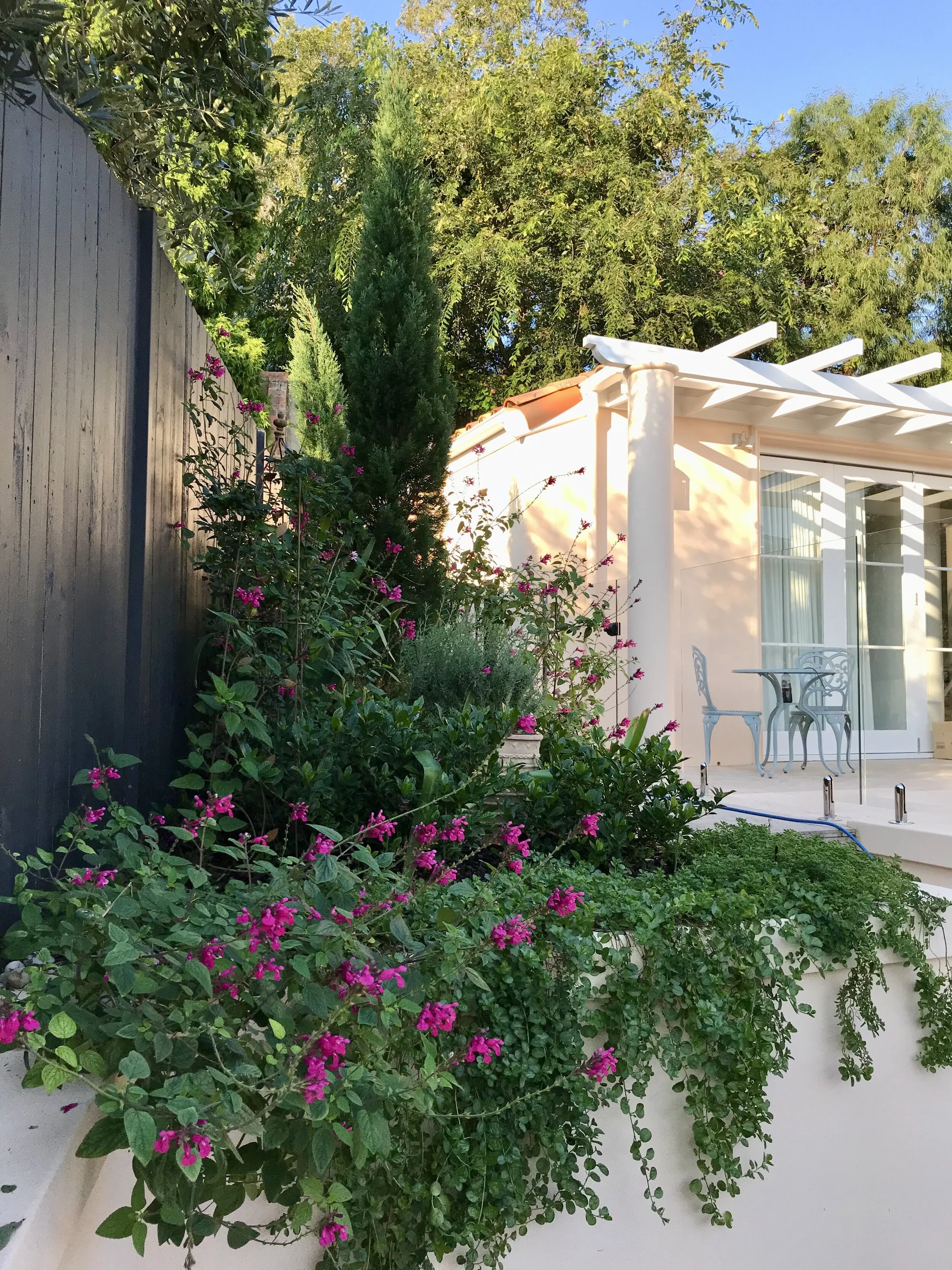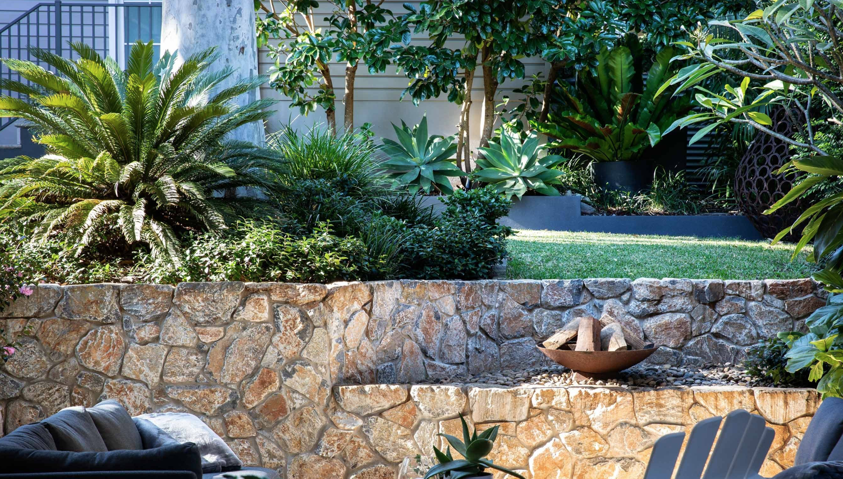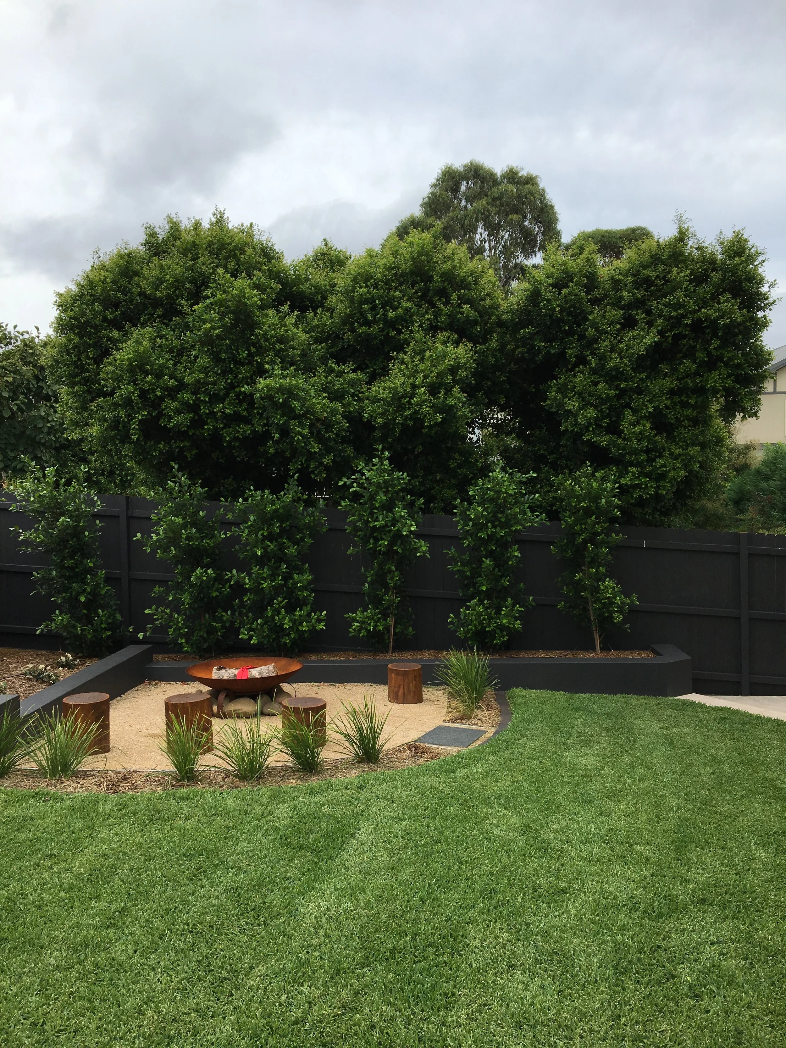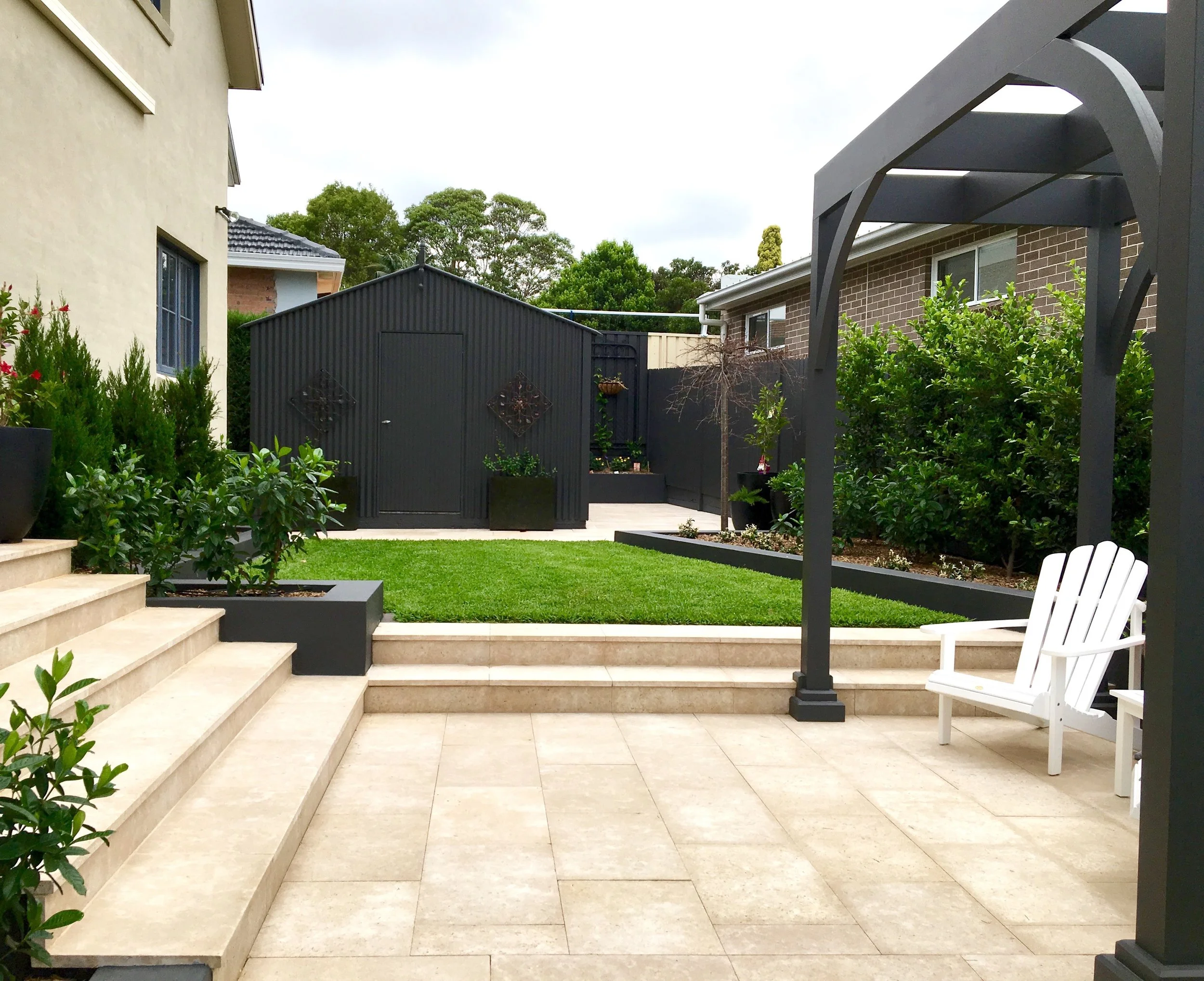 Designs can include all elements of hard landscaping - drainage, retaining walls, paving, patios, pools, pergolas, cabanas, decks, courtyards, fire pits, water features, sheds, fences & gates, driveways, storage, pots, garden lighting, garden decor, outdoor furniture & soft furnishings.