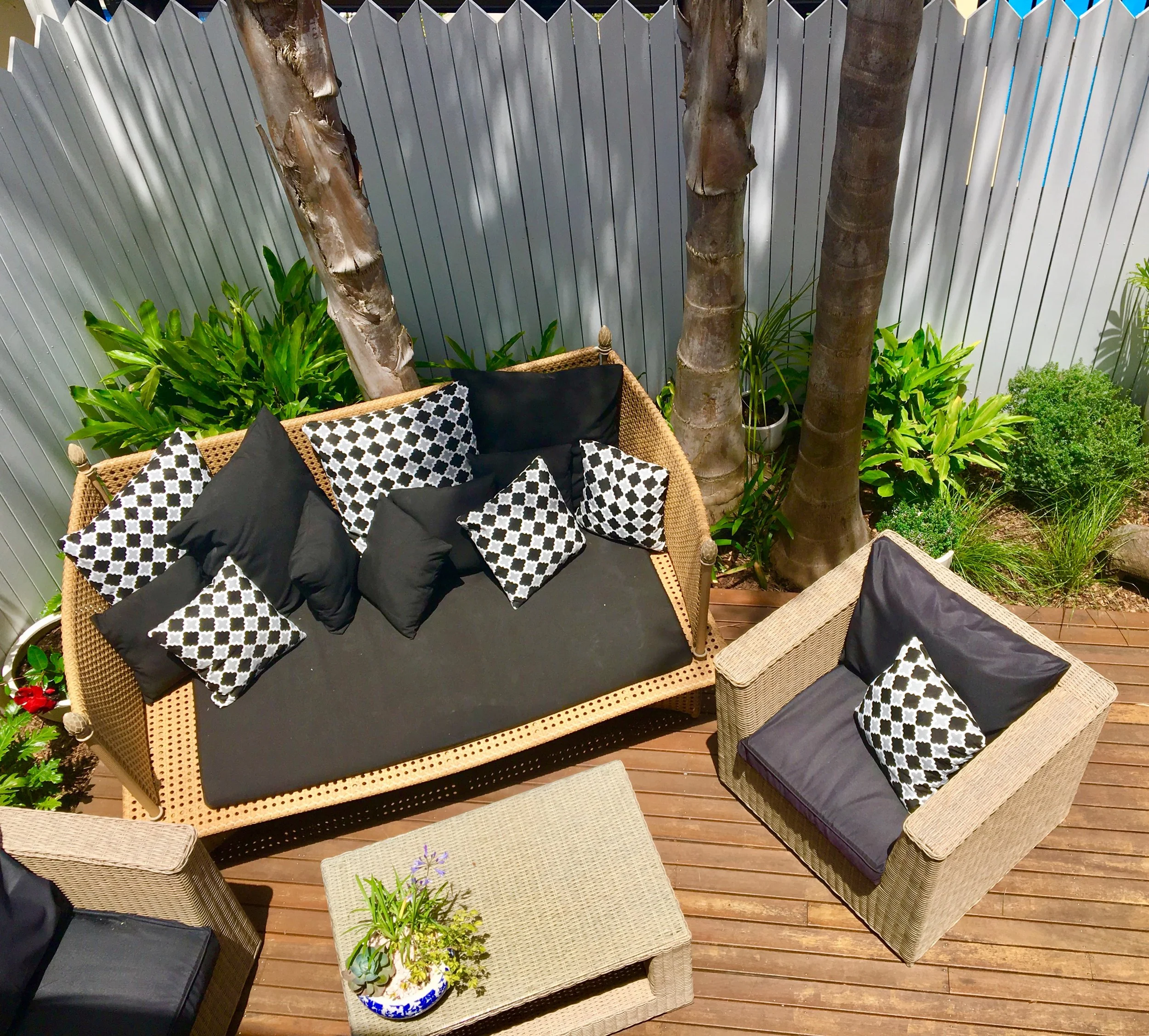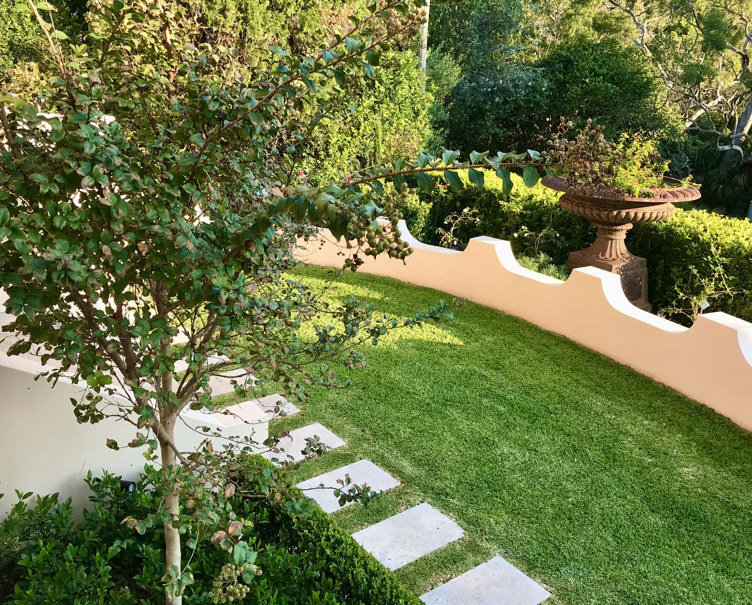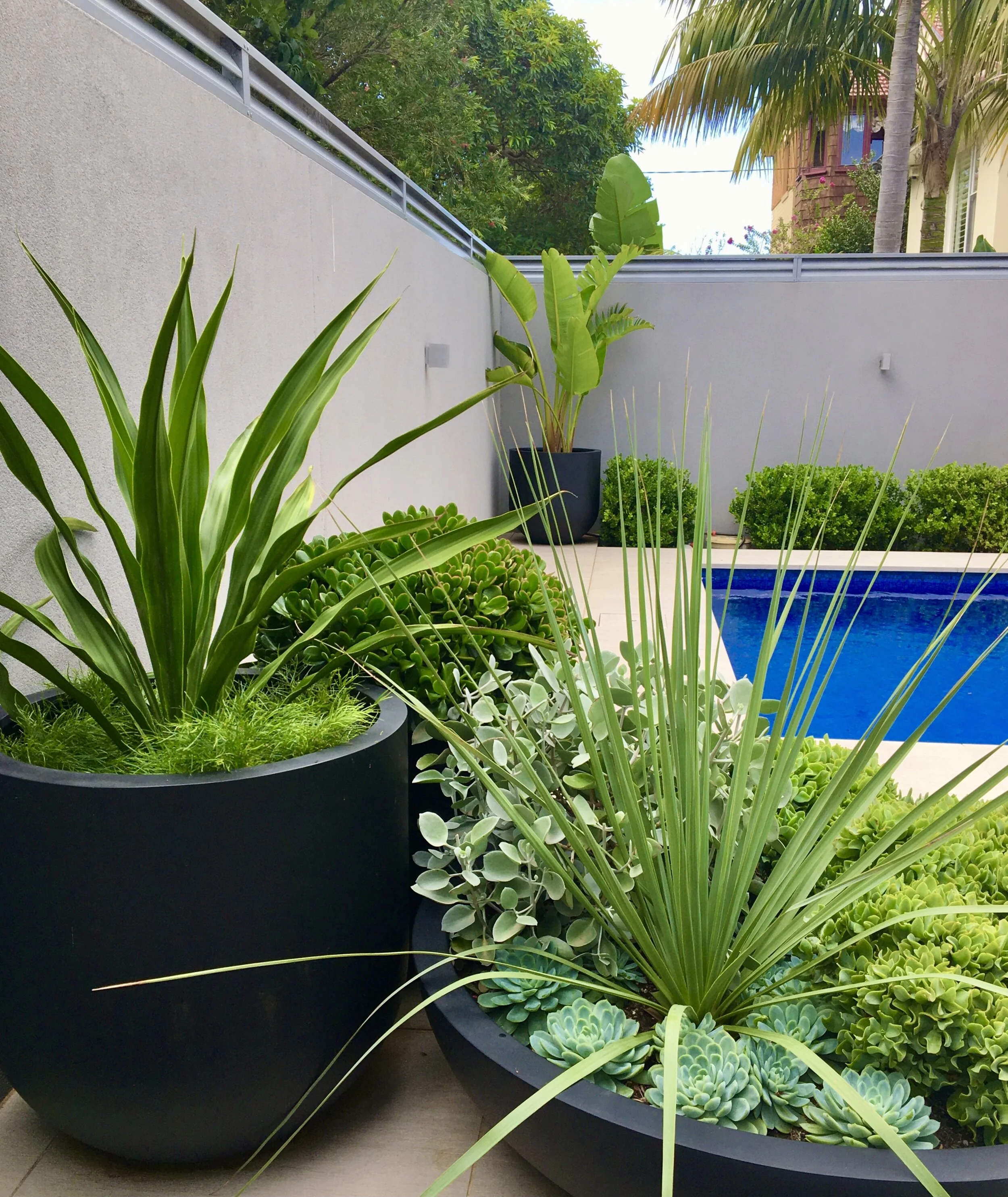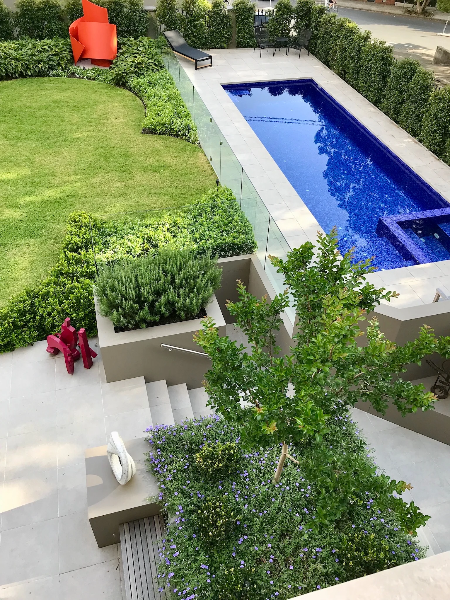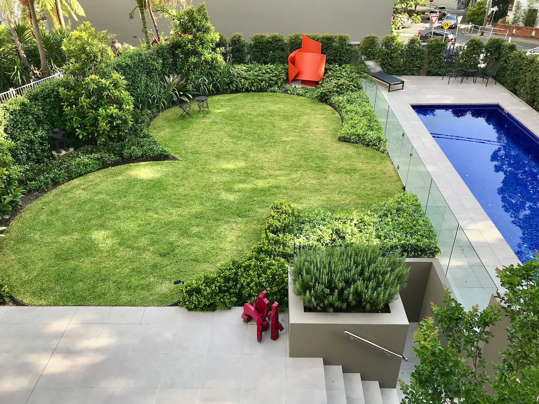 Designs can include all elements of hard landscaping - drainage, retaining walls, paving, patios, pools, pergolas, cabanas, decks, courtyards, fire pits, water features, sheds, fences & gates, driveways, storage, pots, garden lighting, garden decor, outdoor furniture & soft furnishings.